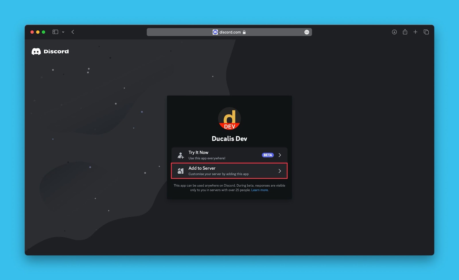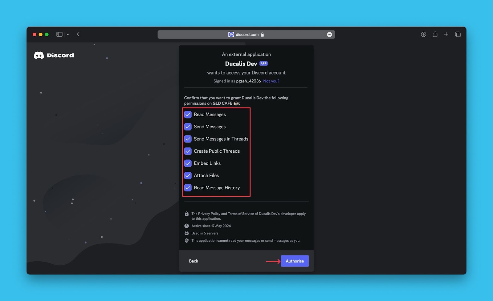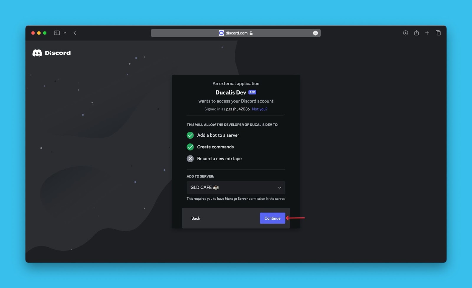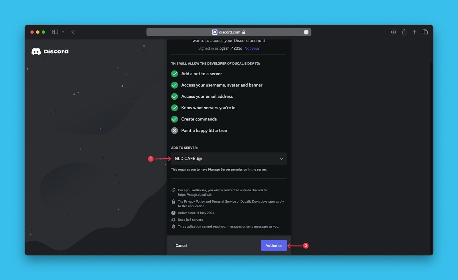 - Autorisiere Ducalis, auf deinen Discord-Server zuzugreifen.