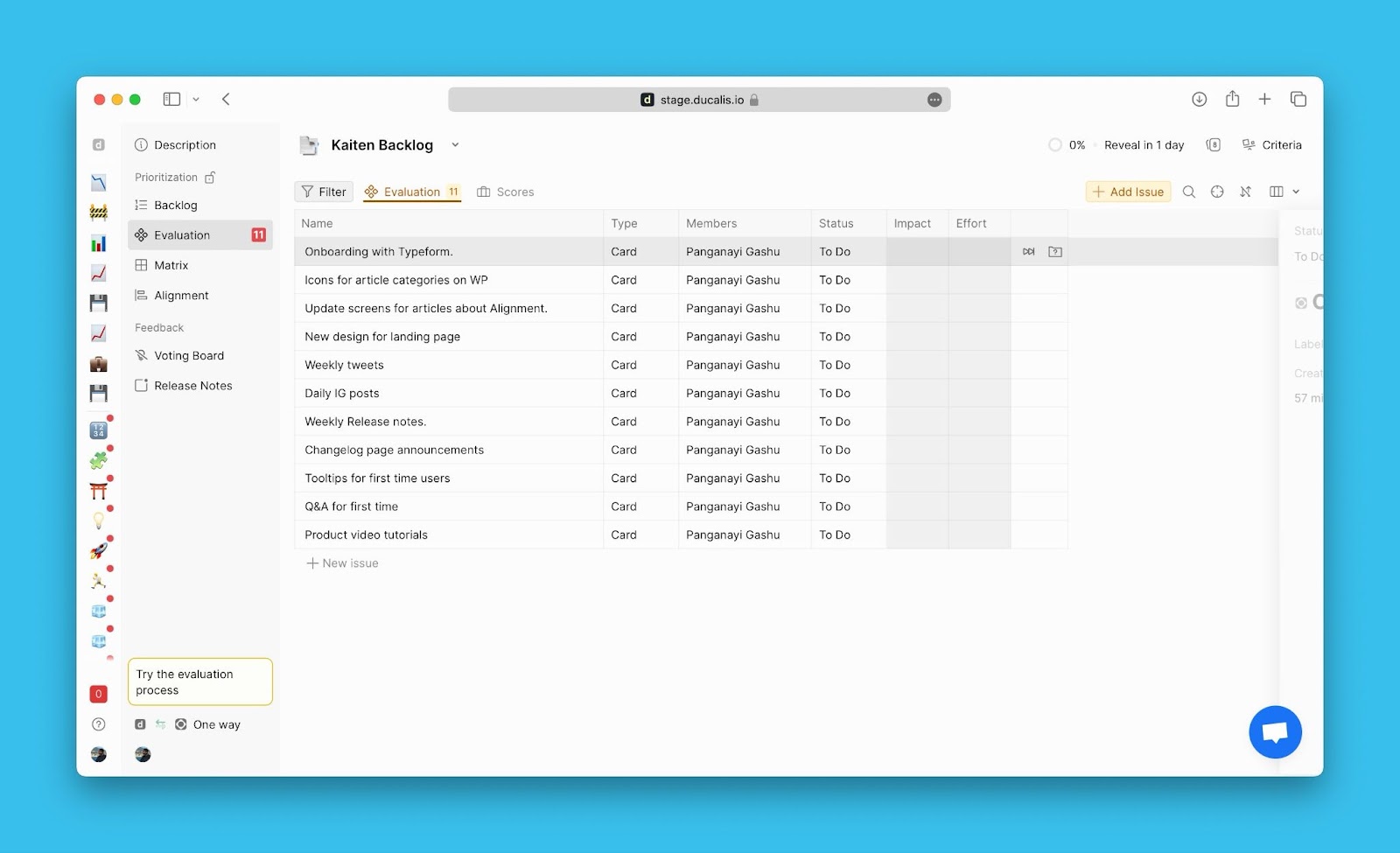 Erfahre hier, wie du Issues, die du in Ducalis erstellst, zu Kaiten hinzufügen kannst.