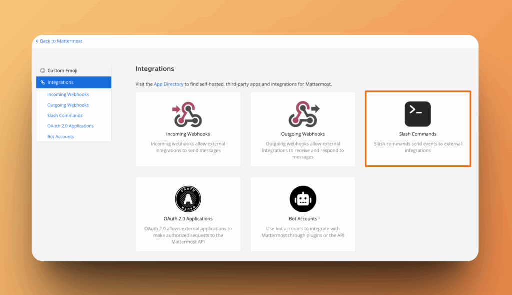 6. Um Ideen aus Mattermost zu erstellen, musst du Slash-Befehle einrichten.