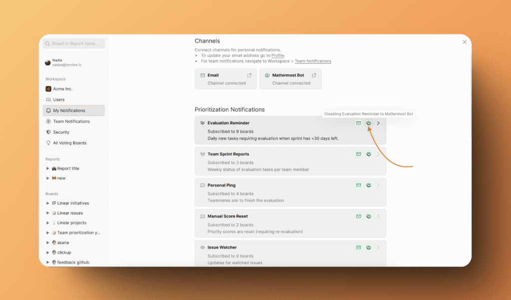Um Team-Benachrichtigungen in deinen Mattermost-Kanälen zu erhalten, verbinde den Mattermost Channel.