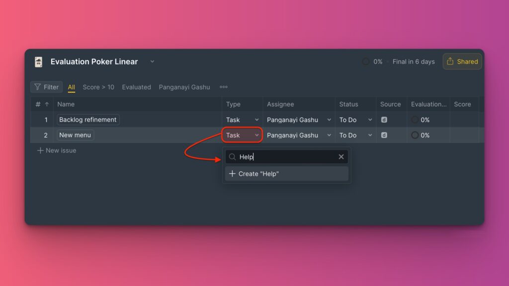 Admins können Typen in neuen und bestehenden Boards hinzufügen oder bearbeiten.