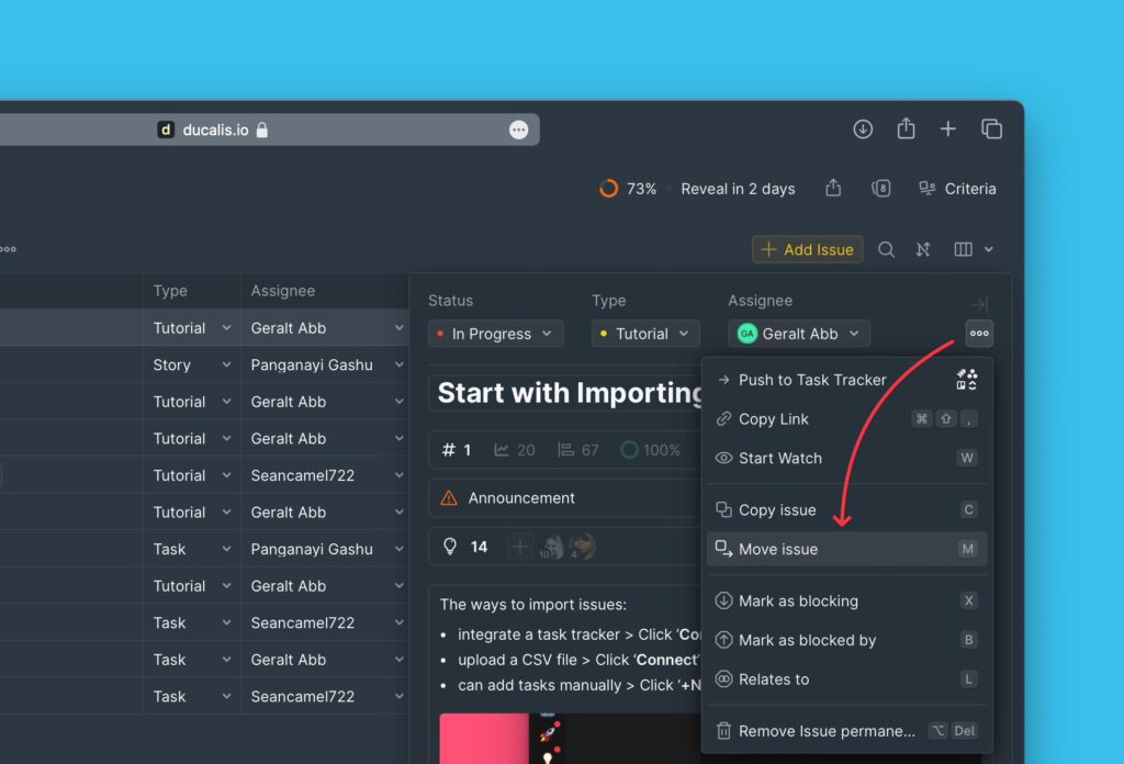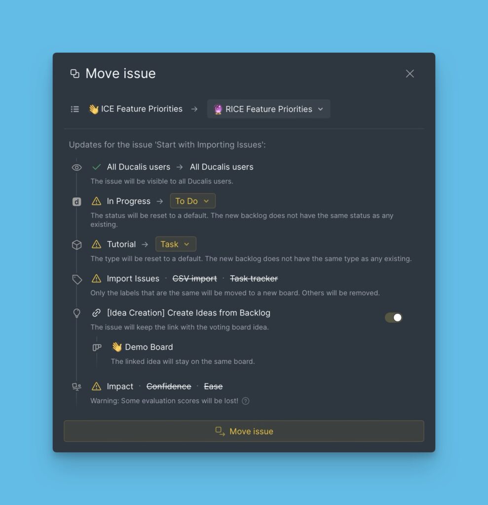 Wenn du einverstanden bist, kannst du auf Move Issue (Vorgang verschieben) klicken.