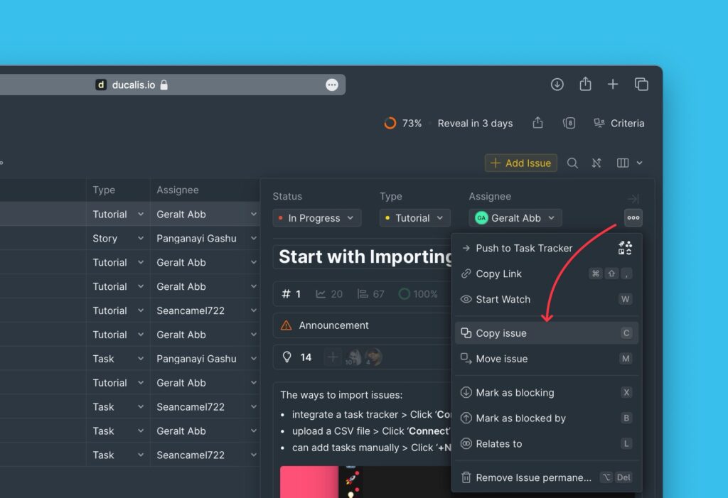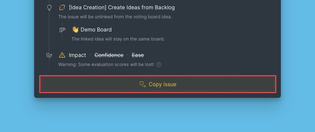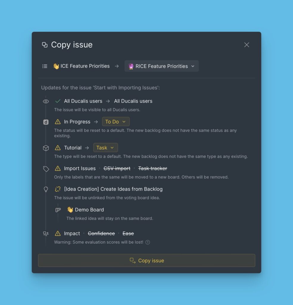 Wenn du einverstanden bist, kannst du auf Copy Issue (Vorgang kopieren) klicken.