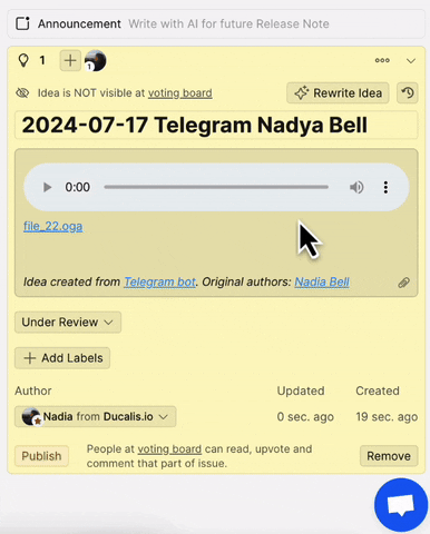 Ducalis allows you to turn turn voice feedback into actionable ideas on your voting boards.