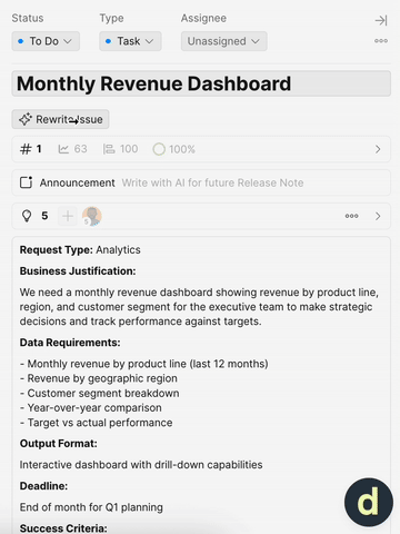 Ducalis AI rewrites your issue descriptions using simple, clear language—making them easier for your team to understand and act on. Whether you’re working with vague input or just want a more polished version, AI can help you: