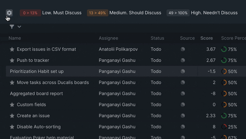 For re-evaluation, users can quickly do it in the issues’ task cards. Or facilitators can just the final scores.