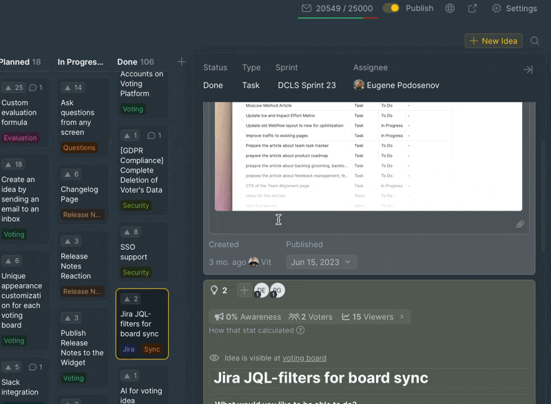- Hover to the Done column and choose the idea whose release date you want to change.