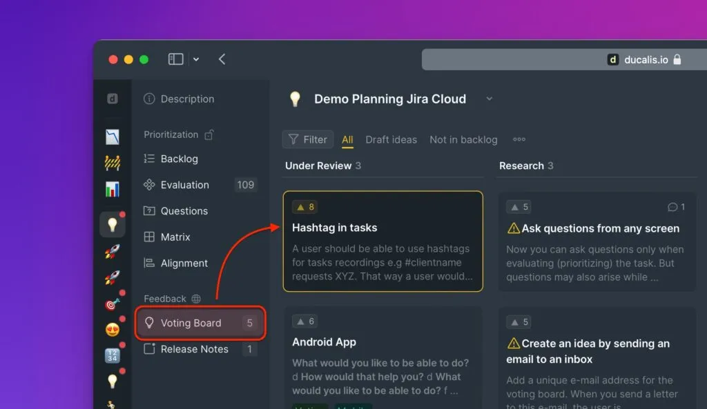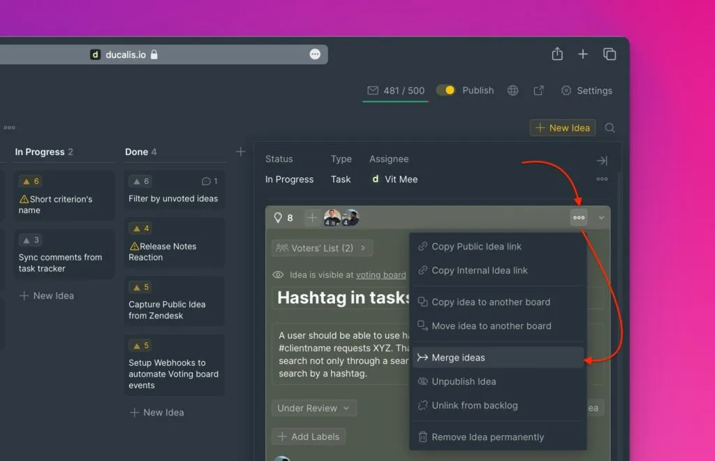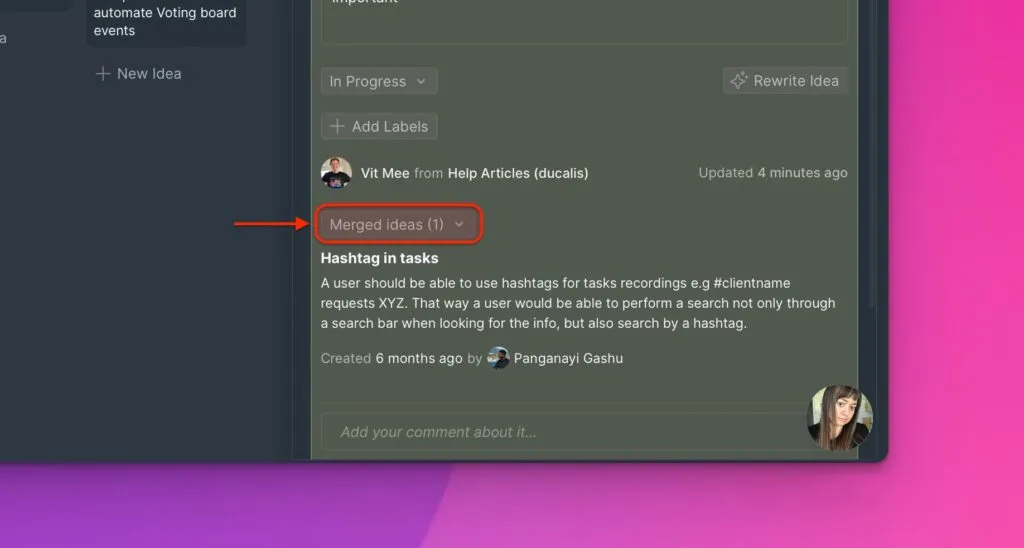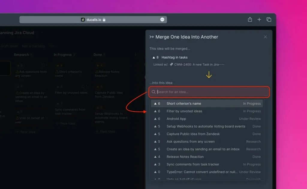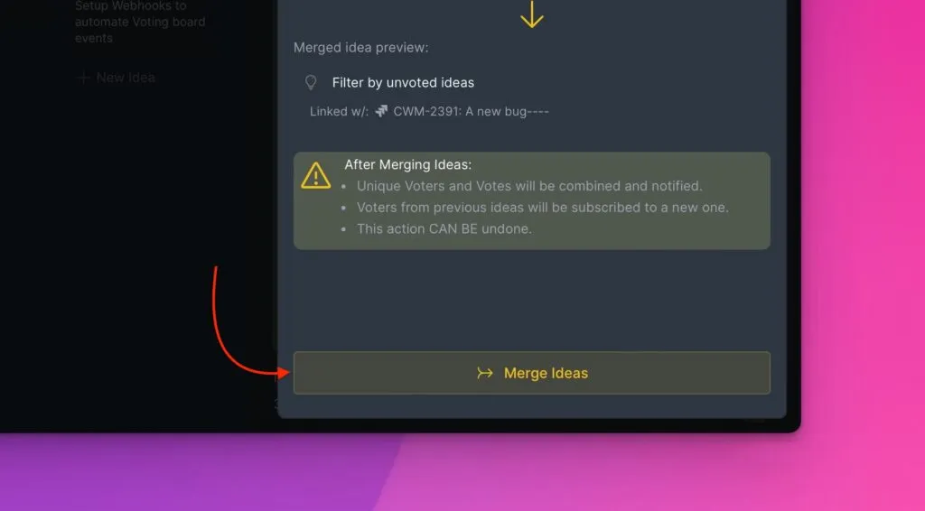 投票ボードに類似したアイデアが複数存在するのを避けるため、重複したアイデアを統合する機能を追加しました。