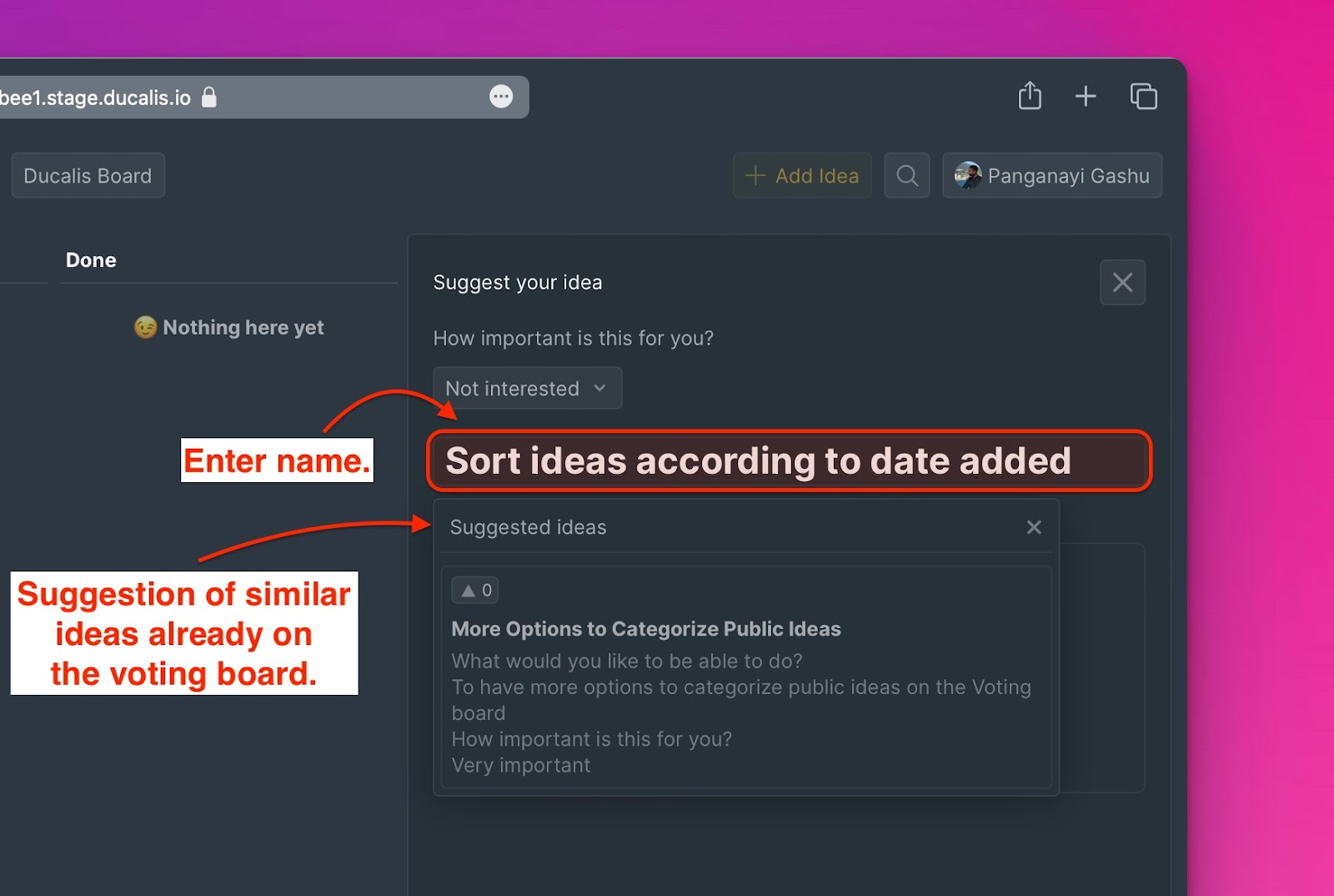 投票ボードでアイデアを作成しているお客様には、作成中のアイデアと類似している可能性のある既存のアイデアの提案も表示されます。詳細はこちらをご覧ください。