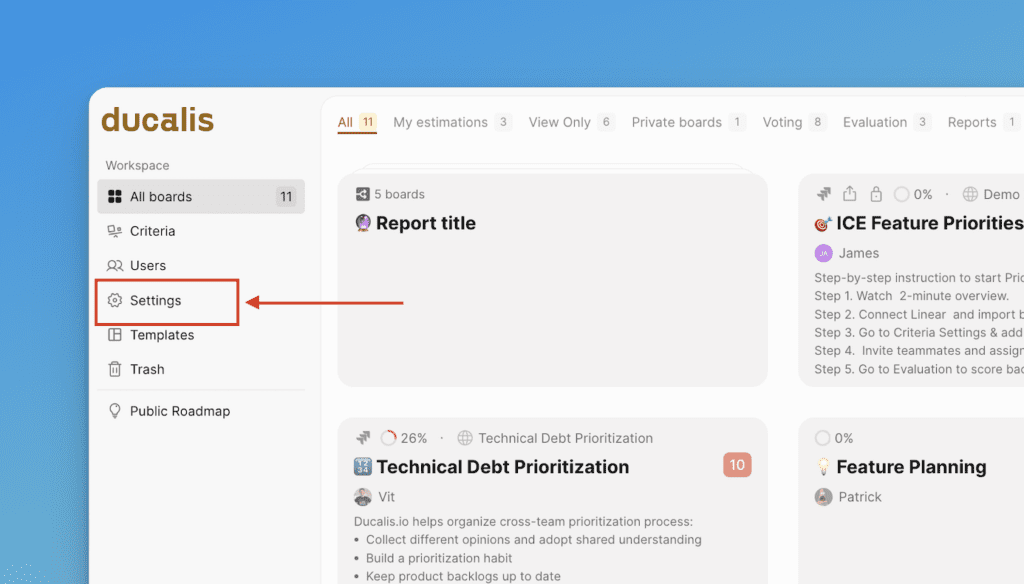 Settings で、All Voting Boards (すべての投票ボード)設定に移動します。