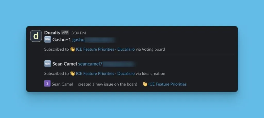 投票ボードのイベントについて即時通知を受け取るオプションもあります。これにより、即座の対応が必要なイベントに対してアクションを取ることができます。即時通知を受け取ることができるイベントには、新しいコメント、新しいアイデア、新しい投票、新しいサブスクライバーが含まれます。