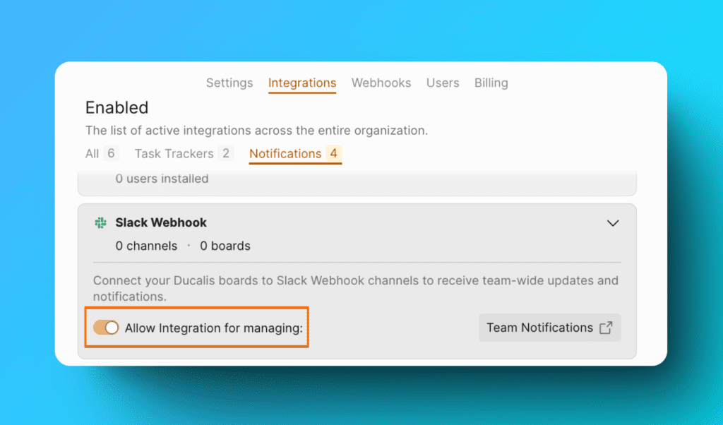 - Allow Integration for managing (管理用の連携を許可) のトグルを有効にします。