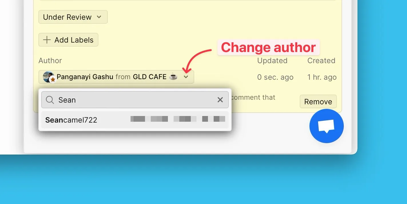 デフォルトでは、あなたがアイデアの作成者として割り当てられます。ただし、Telegram で元のメッセージを送信した顧客を反映するように作成者を変更できます。