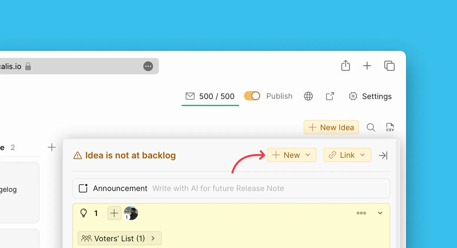 アイデアを内部バックログに追加できます。内部バックログへのアイデア追加について詳しくは、こちらをご覧ください。