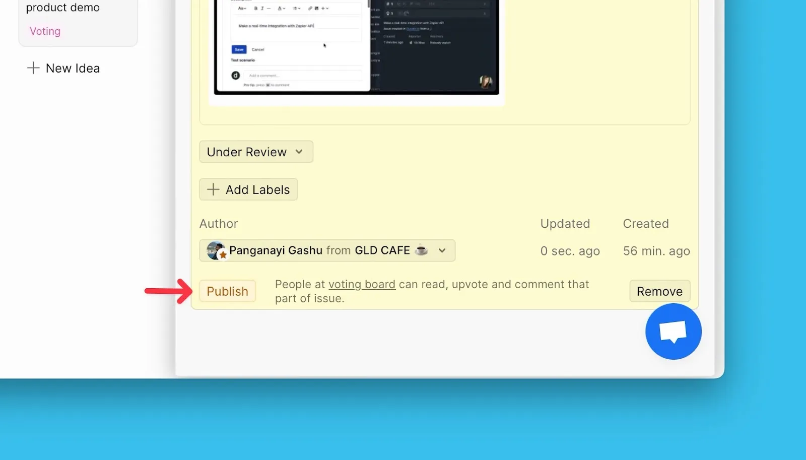 表示されたリンクをクリックして、投票ボードの管理ビューで新しく作成されたアイデアにアクセスします。
