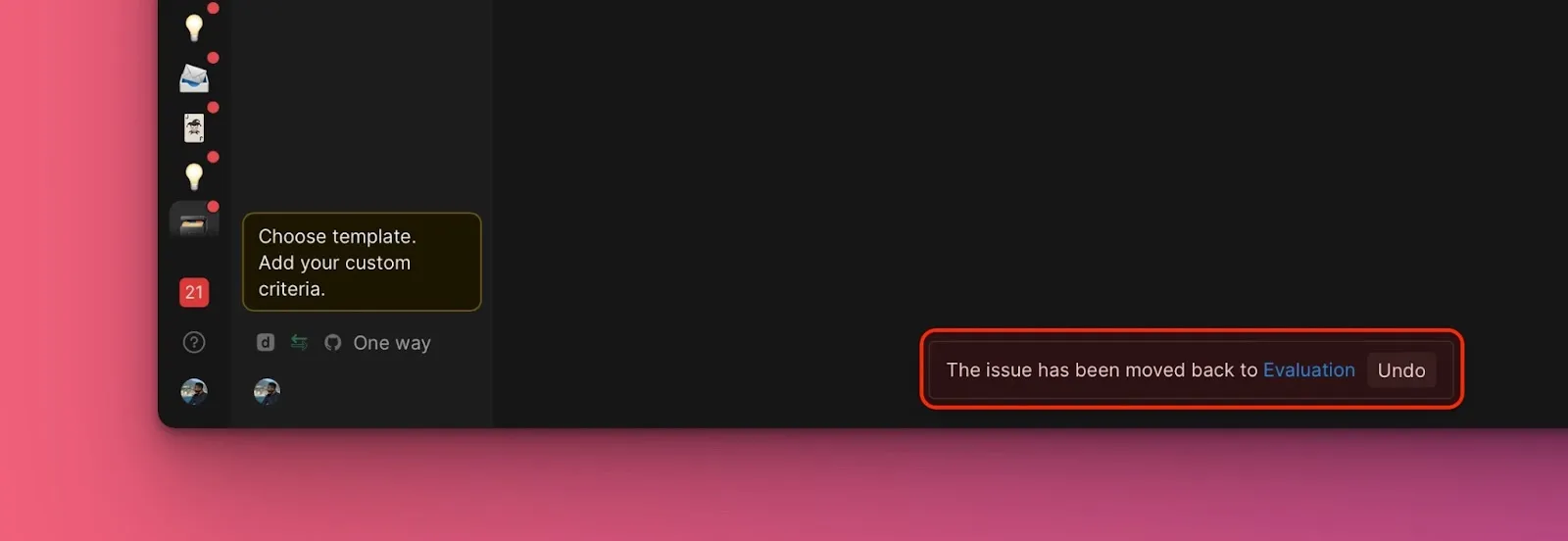 - タスクは Evaluation (評価) タブに戻されます。再開した課題が評価に戻されたことを知らせるヒントと、undo (元に戻す) オプションがページ下部に表示されます。