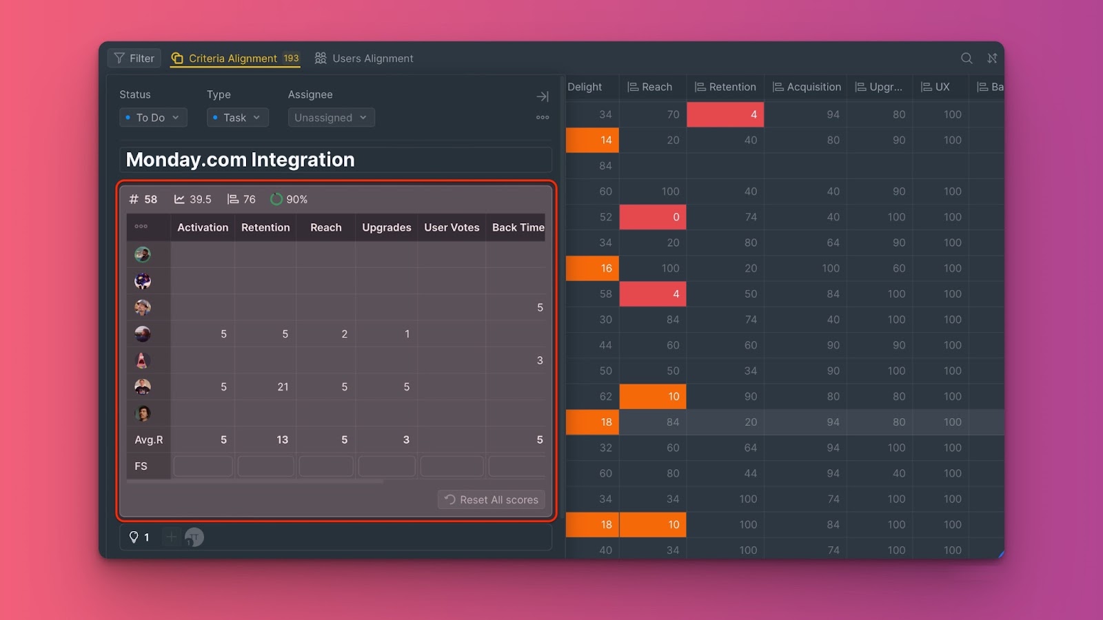 Orange and red cells mean that the user’s scores differ greatly from the team, and you should discuss the user’s opinion on the issue.