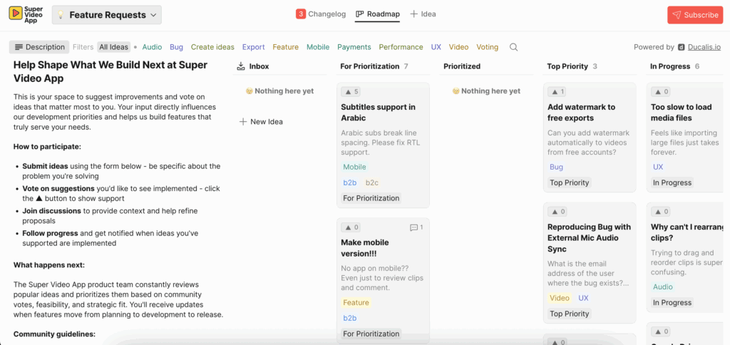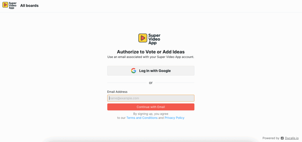 Want to see it in action? Check out our TEST Ducalis Voting board https://videoapp.ducalis.io/acme-inc-insights-598