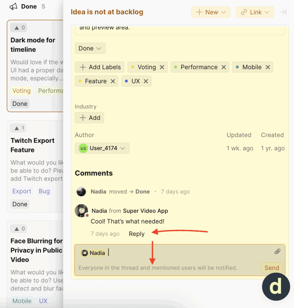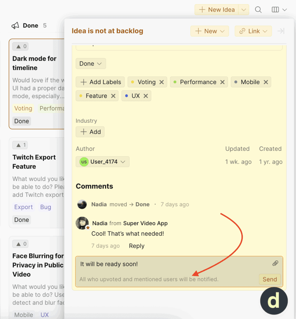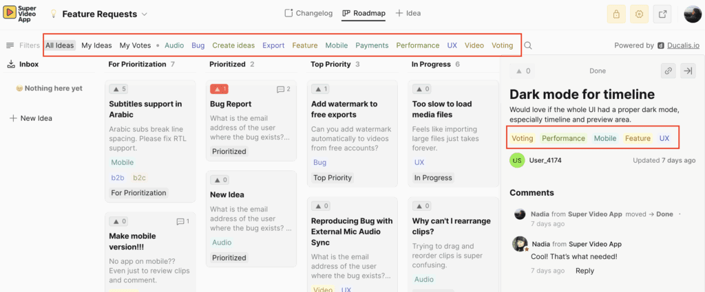 When you update an idea’s status, it automatically moves along the roadmap, showing users that you’re actively working on their requests. Learn more.