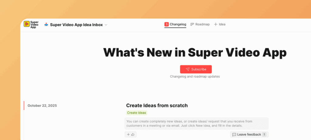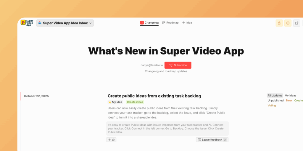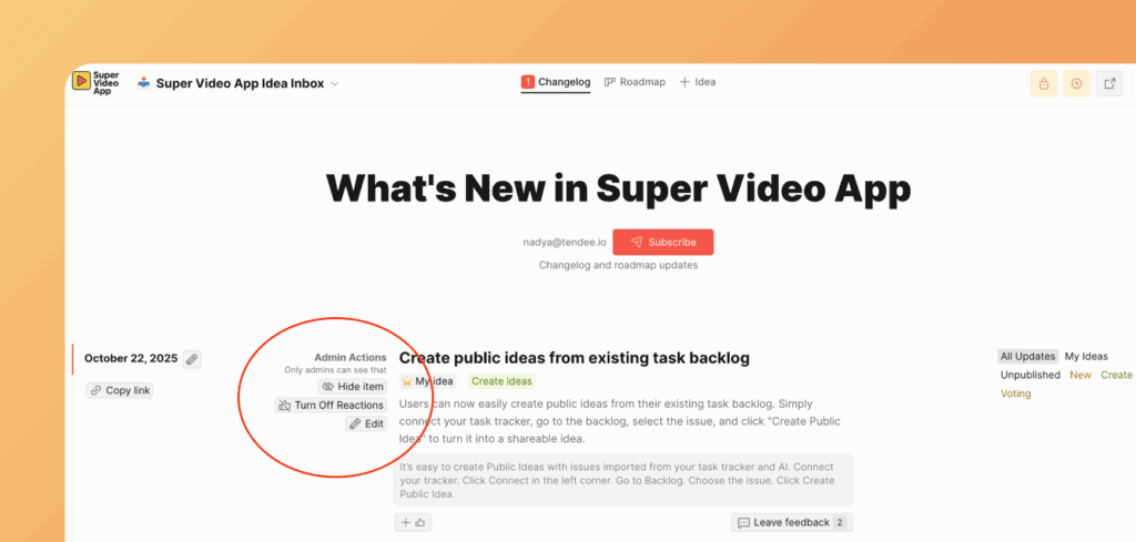 If you don’t create and approve an announcement, the idea you’ve created will be visible on the Changelog page.