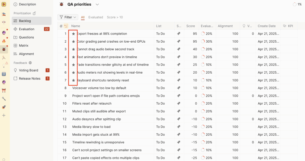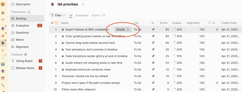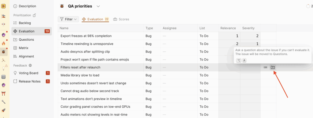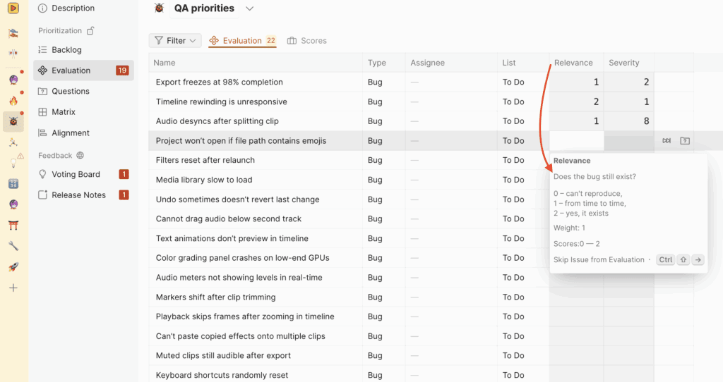 To start evaluating issues for prioritization, select the “Evaluation”.