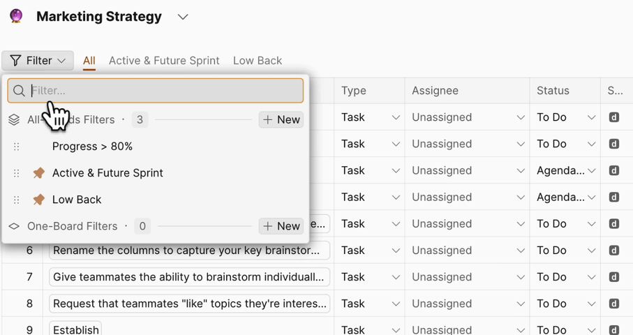 Durum sütunu altında varsayılan durum "Yapılacak"a tıklayın.