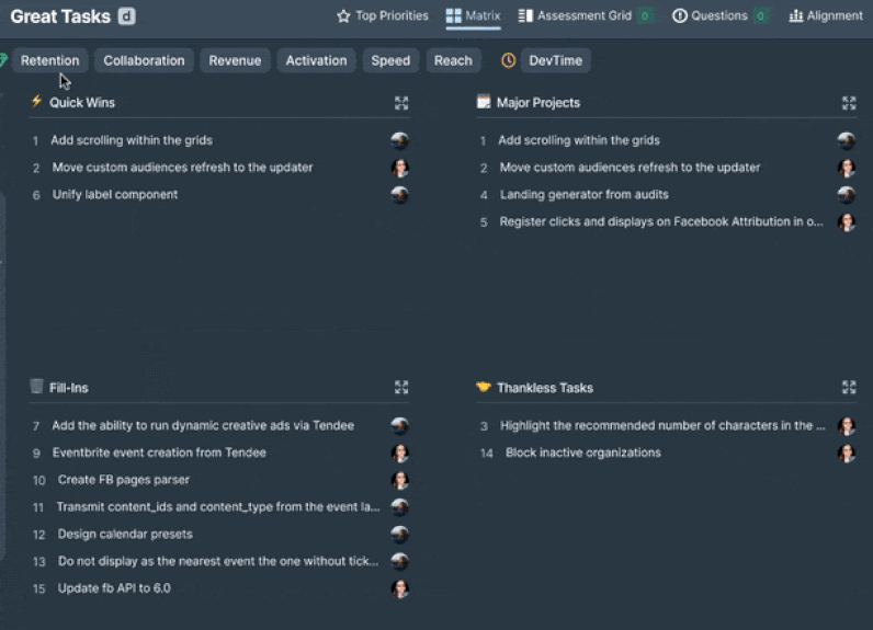 Customizable prioritization criteria based on your goals: Create a unique matrix for each team based on their requirements.